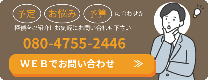 YANBONだけのお得な調査 まずは無料相談! YANBONでご紹介できる調査項目 浮気・不倫調査 企業・法人向け調査 身辺・結婚前調査 行方調査・人探し 素行・身辺調査 ストーカー調査 浮気・不倫調査 企業・法人向け調査 身辺・結婚前調査 行方調査・人探し 素行・身辺調査 ストーカー調査 気になる調査費用の相場はこちらから!